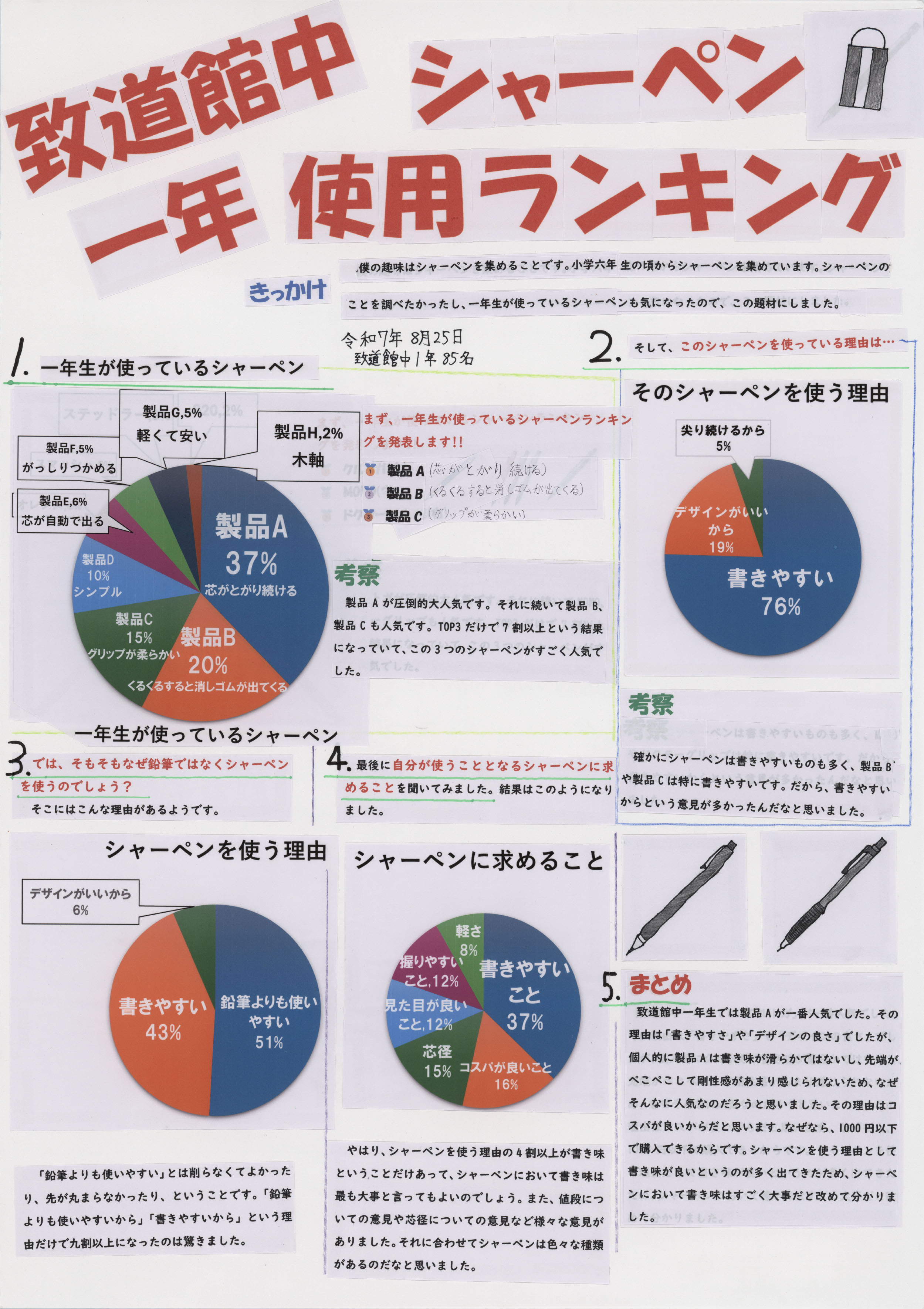 第5部 | 致道館中一年シャーペン使用ランキング(JPG:1,305KB) | 山形県立致道館中学校 | 佐藤 壮馬 |