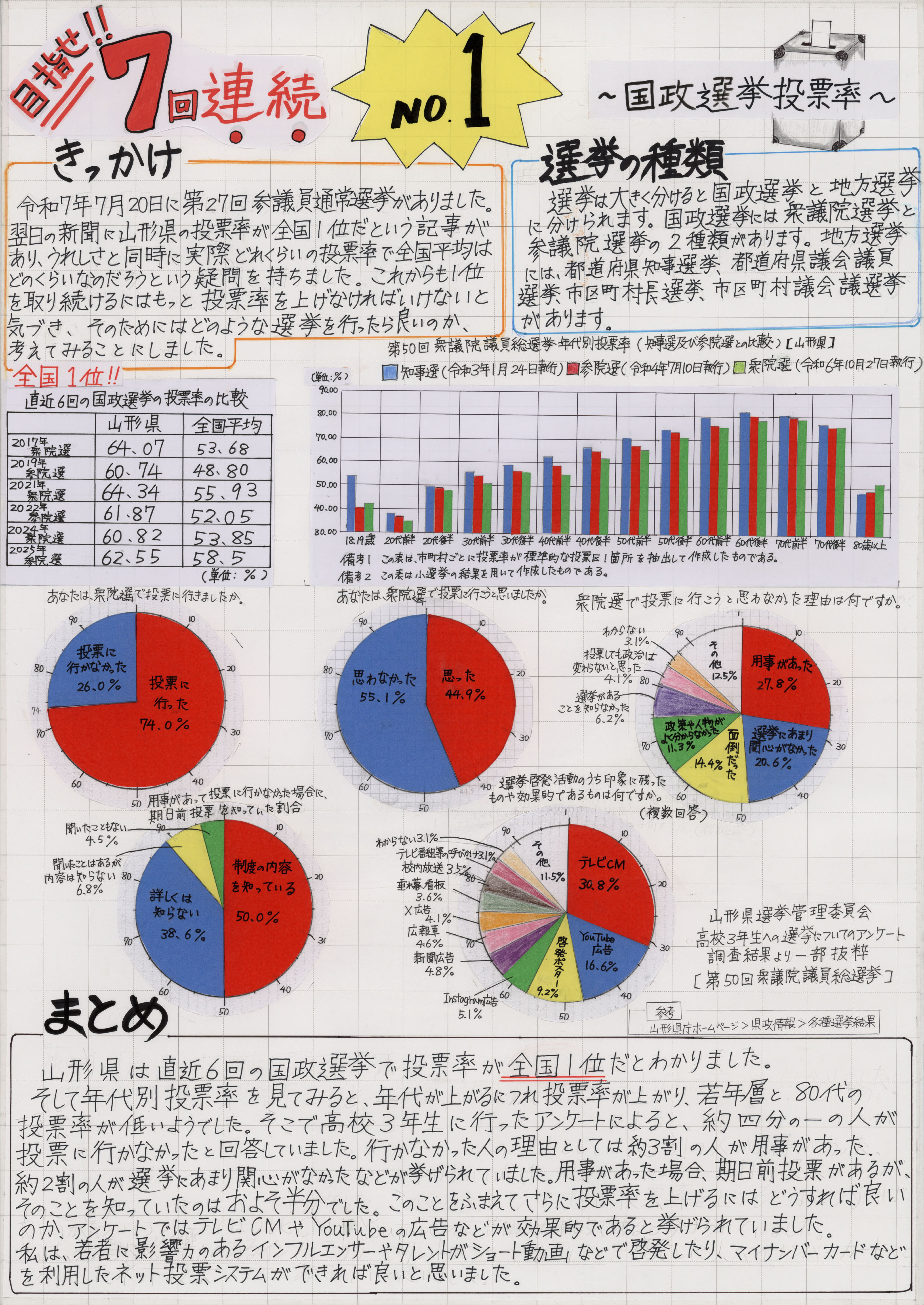 第4部 | 目指せ!!7回連続No.1 ~国政選挙投票率~(JPG:1,900KB) | 山形県立致道館中学校 | 武石 侑樹 |