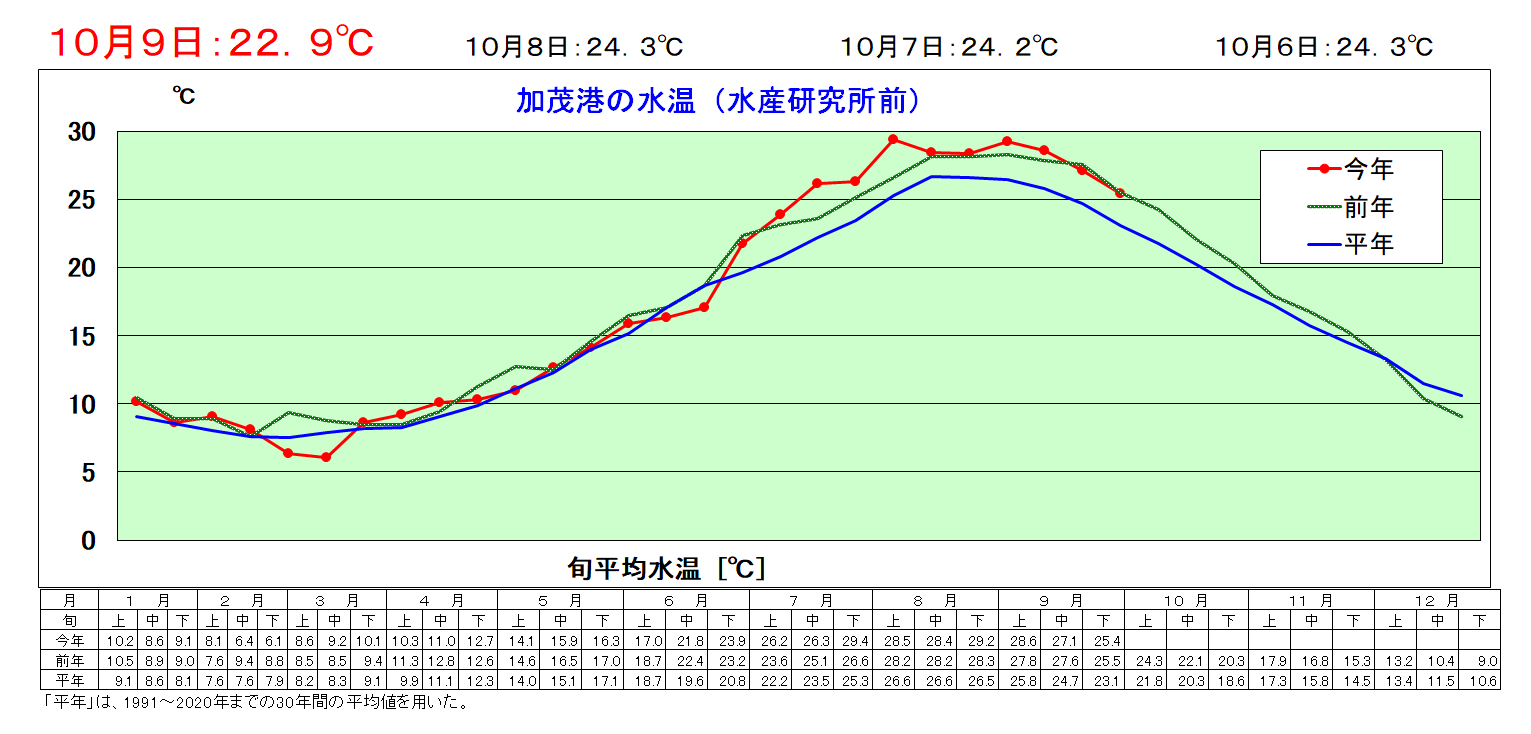 加茂港内水温(PNG:68KB)10月8日:22.9℃